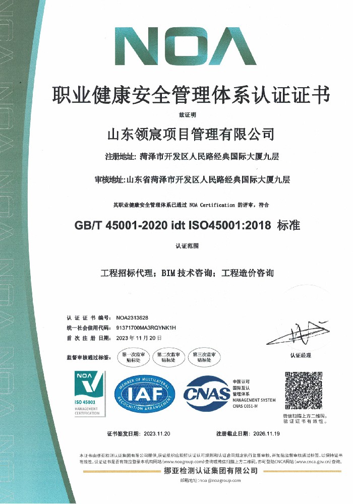 山東領宸項目管理有限公司是一家以全過程工程咨詢為核心的咨詢服務公司,本公司現具備工程造價咨詢乙級資質,房屋建筑工程、市政工程監理乙級資質和招標代理備案。公司擁有專業的工作團隊及豐富的行業經驗,在行業領域內具有雄厚的實力,企業管理人員擁有行業20年以上的資深行業工作經驗。公司現有專業技術人員50余人,具有一級注冊造價工程師、注冊監理工程師、一級注冊建造師、二級注冊建造師、招標師等工程類國家注冊執業資格證書人員合計30余人以及高級工程師3人,持證上崗率達到90%......